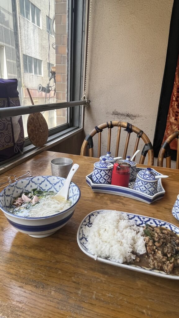 麺のやつはフォーな感じでした。具は鶏ささみかな?あと肉団子みたいなやつもあって美味しかったです。淡白な味付けで素材の味がしっかり前に出てる感じでした。これぞタイ料理のフォーって感じです。